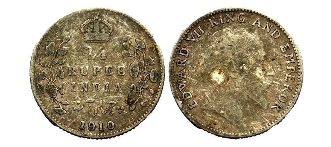 Edward VII, Silver 1/4 Rupee, 1910, Bombay Mint,
