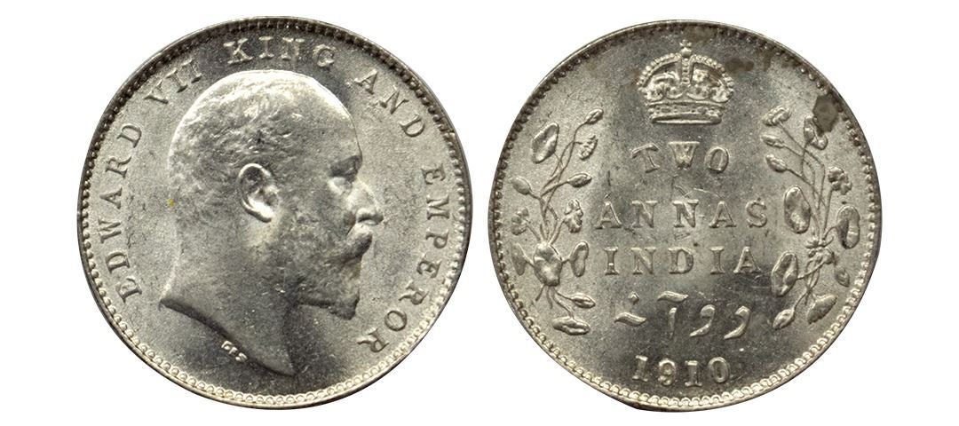 Edward VII, Silver 2 Annas, 1910, Calcutta Mint, (Prid 562).