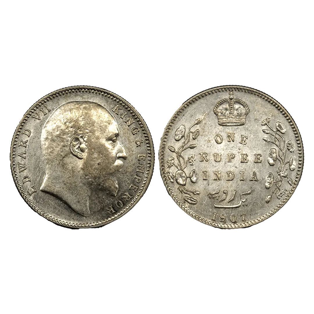 Edward VII, Silver Rupee, 1907, Bombay Mint, Thin 7 in 1907.