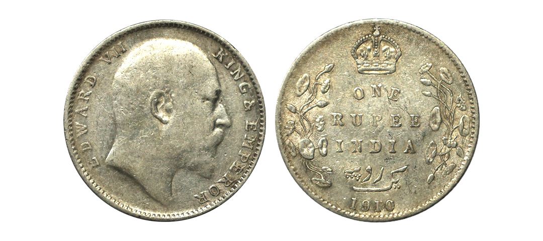 Edward VII, Silver Rupee, 1910/00 Overdate, clear impression of the under type