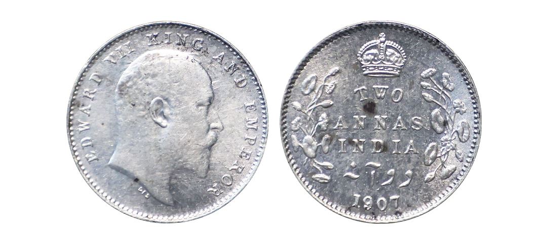 Edward VII, Silver, Two Annas,1907, Calcutta Mint, Extra Fine+.