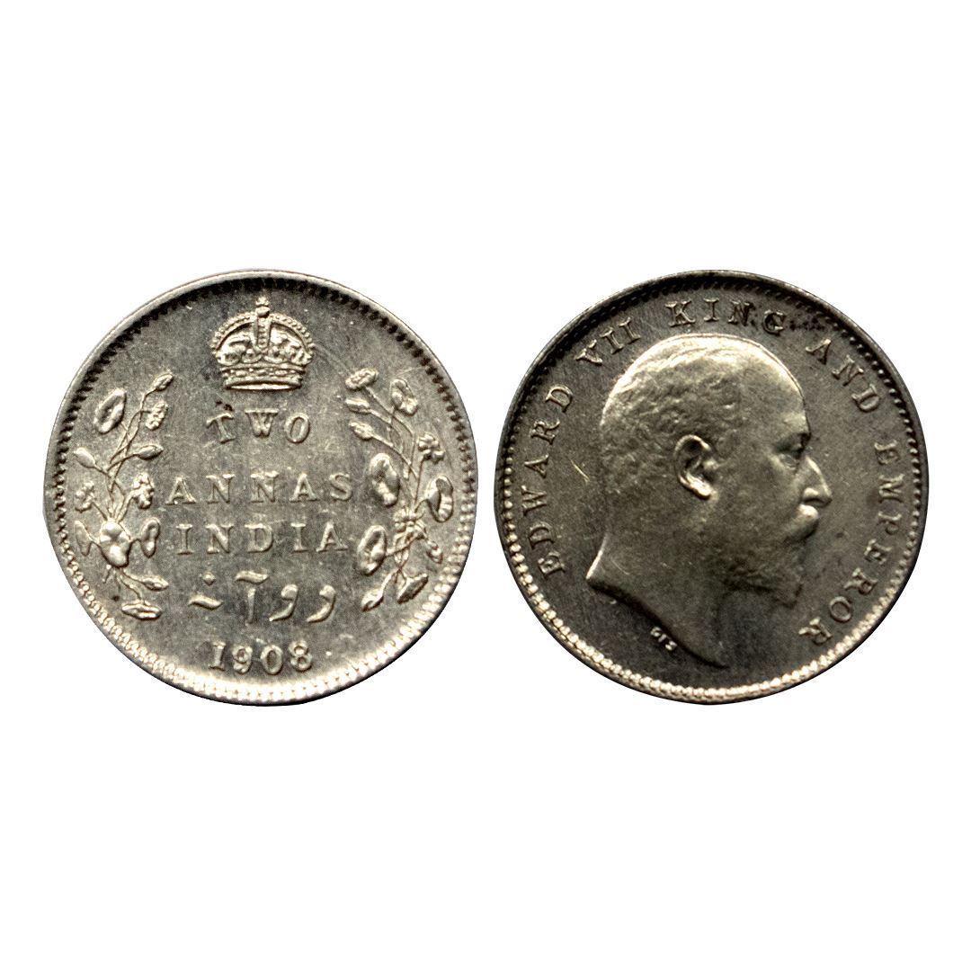 Edward VII, Silver Two Annas 1908, Calcutta Mint.