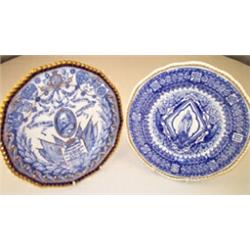 Edward VII commemorative plate with blue and white transfer decoration having gilt highlights and...