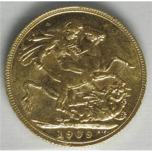 <B>Edward VII gold Sovereign 1909C, </B></I>KM14, MS60 ICCS, a lustrous example of this scarcer type.<BR><I>From the Dominion Collection.</B></I>