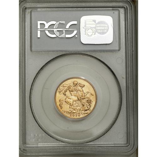 <B>Edward VII gold Sovereign 1910C, </B></I>KM14, MS62 PCGS, lightly toned with some noticeable contact marks.