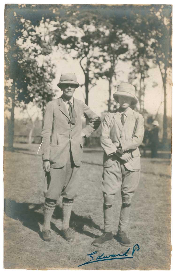 Vintage matte-finish 5.5 x 9 photo of a young Edward at camp, complete with Pith helmet, signed in fountain pen, “Edward P.” In fine condition, with some light silvering and toning to edges from previous display and a bit of light edge curling. Pre-certified John Reznikoff/PSA/DNA and RRAuction COA.