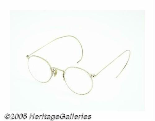 <B>Edward Van Sloan Glasses from "Dracula."</B></I> Directed by Tod Browning and released in 1931, the original screen adaptation of Bram Stoker's "Dracula" launched both actor Bela Lugosi's career and Universal Studios' classic horror-movie cycle of the 1930s. Featured in this lot are the eyeglasses worn in the movie by actor Edward Van Sloan in the role of the vampire-slaying Professor Abraham Van Helsing. A unique item in excellent condition.