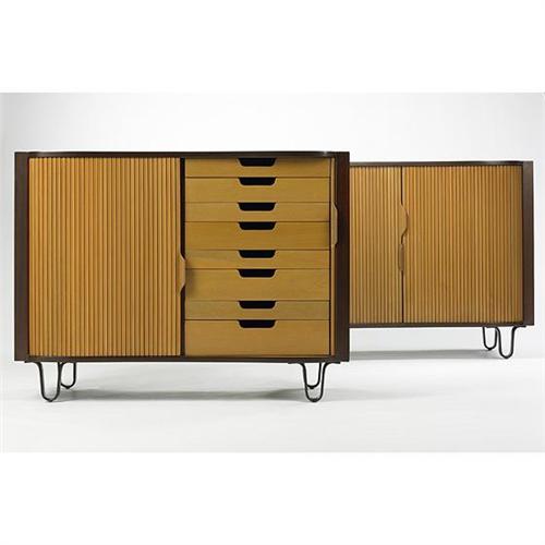 The Mr. Chest features two tambour doors concealing twelve drawers; the Mrs. Chest features two tambour doors concealing sixteen drawers. <BR><BR>Condition of the item is not included in this description. Condition reports are available from Wright upon request. Wright strongly recommends that you review a condition report for each item on which you plan to bid.