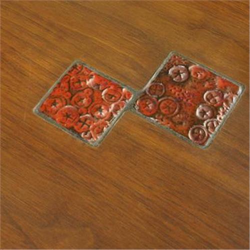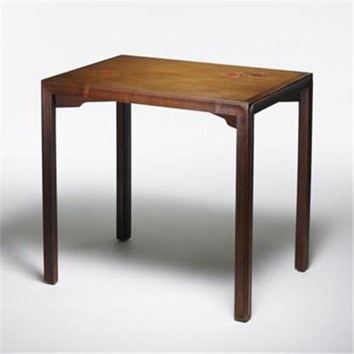Edward Wormley<BR>occasional table, model 5724N<BR>Dunbar<BR>USA, 1957<BR>walnut, Natzler tiles<BR>22 w x 30 d x 28.4 h inches<BR>Signed with applied gold rectangular manufacturer's label to underside: [Dunbar Berne, Indiana] and paper vendor's label.<BR><BR>Condition of the item is not included in this description. Condition reports are available from Wright upon request. Wright strongly recommends that you review a condition report for each item on which you plan to bid.