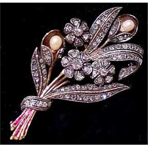 <tr><td>Title:Edwardian Diamond Pin with Rubies & Pearls</td></tr>