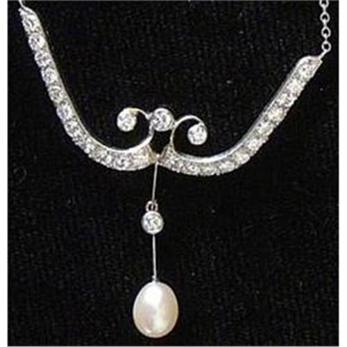 <tr><td>Title:Edwardian Diamond and Platinum Pearl Necklace</td></tr>