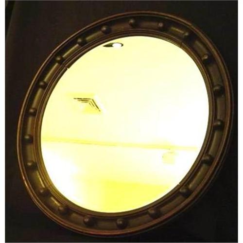 24 inches in diameter. Original bevelled glass mirror. All in original, excellent condition. Not a mark on the frame.