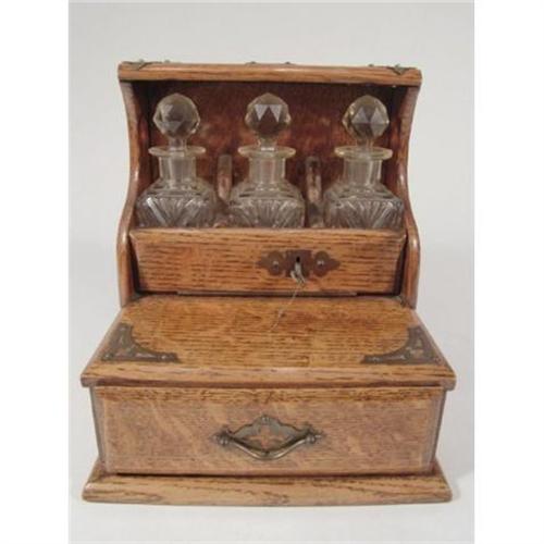 <tr><td>Title:Edwardian Miniature Oak Three Bottle Tantalus </td></tr>