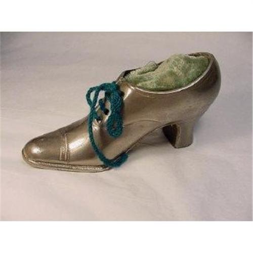 <tr><td>Title:Edwardian Spelter Shoe Pin Cushion</td></tr>