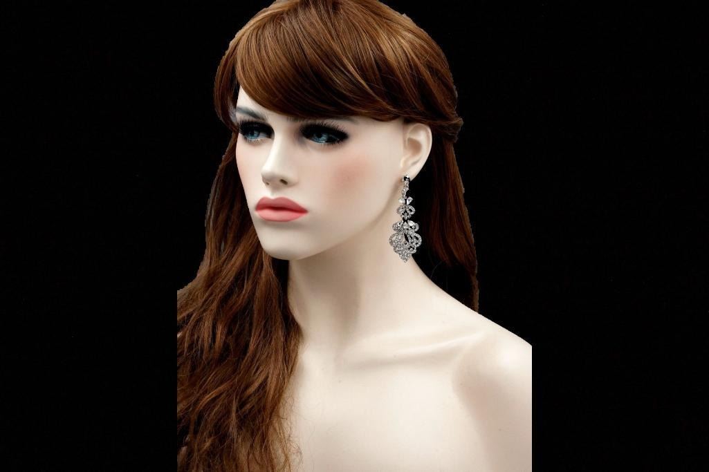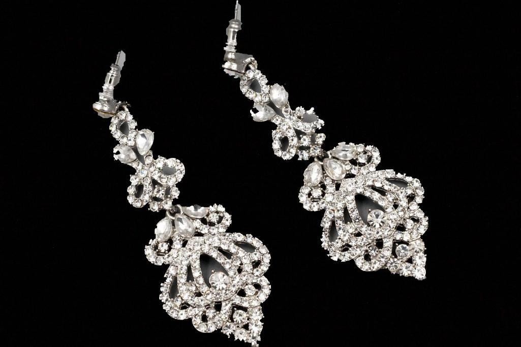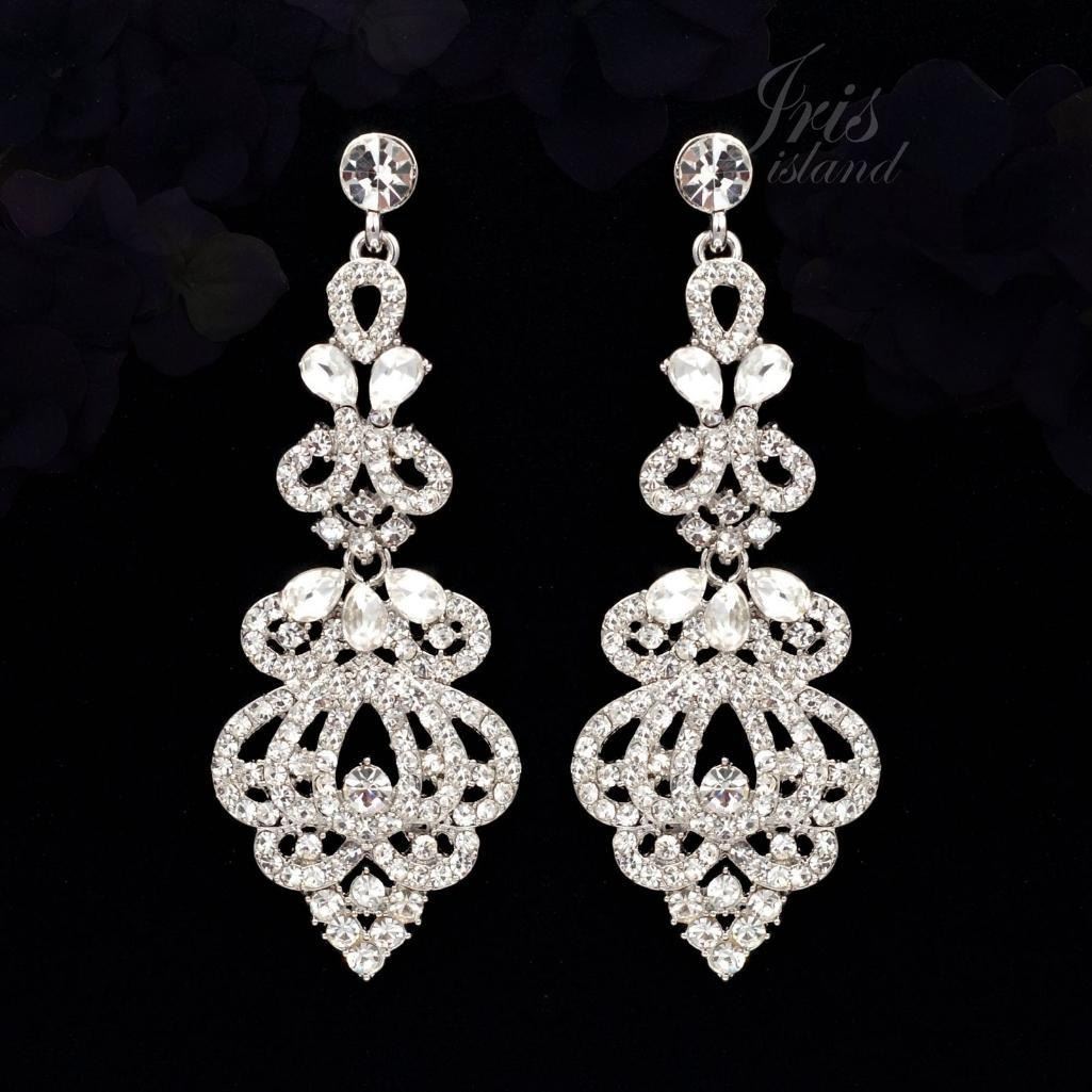 Edwardian-style Clear Czech crystals set into rhodium plated white metal chandelier dangle earrings. 3" L. 9775-031018-EB-59883