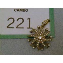 "Edwardian cluster brooch, centre diamond of good quality and colour , surrounded with seed pearls" £450-550