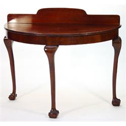 Edwardian mahogany Chippendale style semi circular side table, the top with shaped back rail and reeded edge on cabriole legs with claw and ball feet
