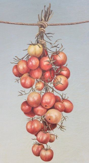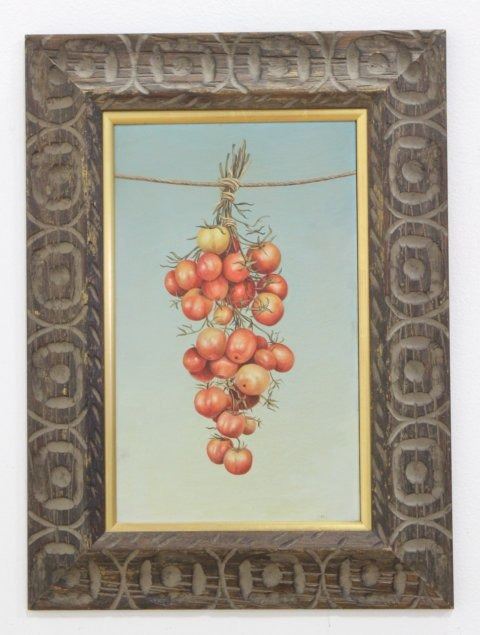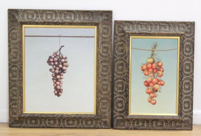 One "Cacho de Uvas #2" - grapes, oil on board, signed and dated 1969 Lisboa rear, Edwin Dorris (1919-1985), approx. 18" H x 15" W unframed, 25" H x 22" W framed. One "Tomates #1" - tomatoes, oil on board, signed and dated Lisboa 1970 rear, 16" x 10" unfr,