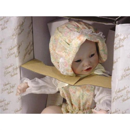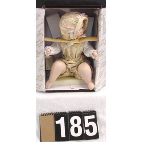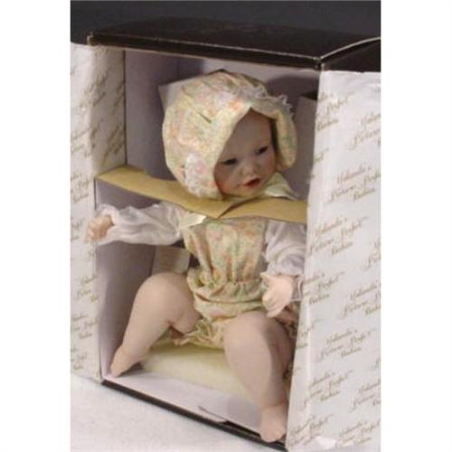 A doll made by the Edwin M. Knowles China Company from the Ashton-Drake Galleries. "Lisa", created by artist Yolanda Bello from "Yolanda's Picture-Perfect Babies" collection, 1990. Doll is in perfect condition with white pillow to display doll. Measures 10 inches tall and weighs 1 lb 12 oz. [81]