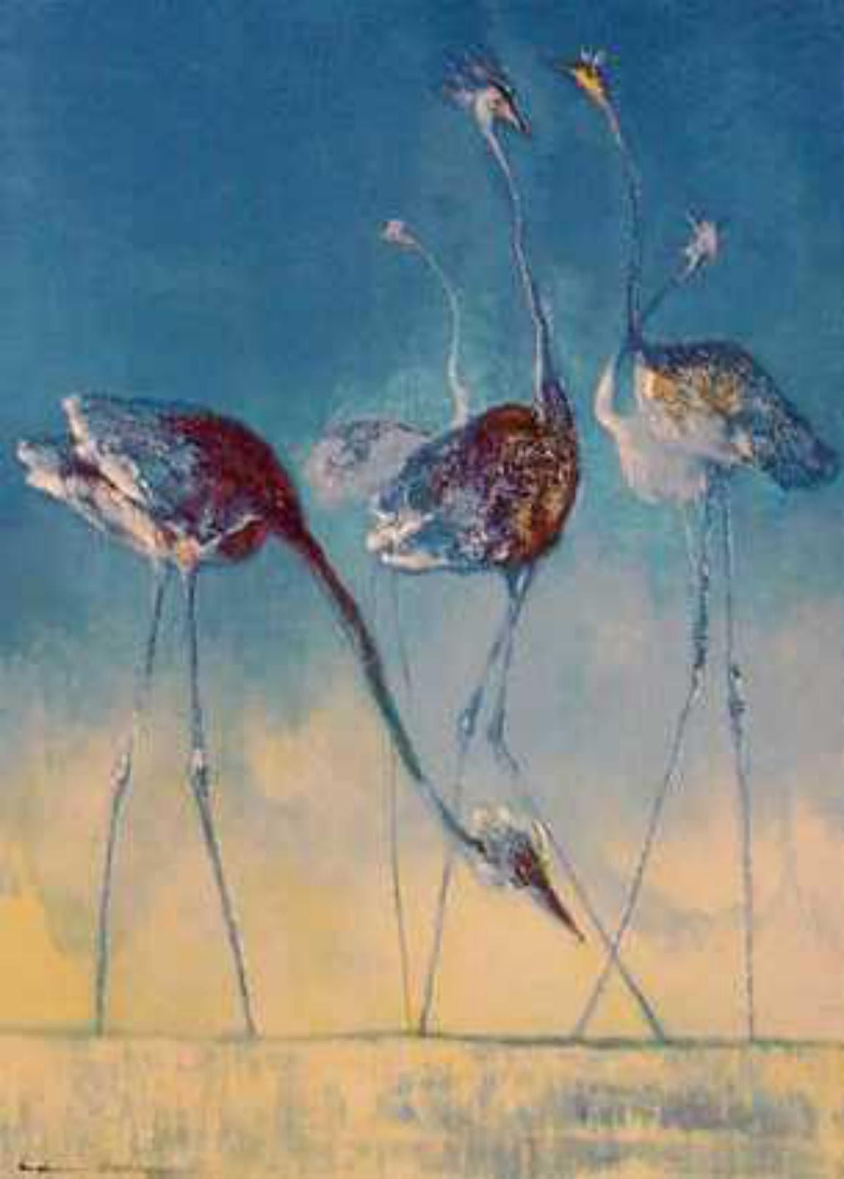 Artist: Edwin Salomon. Medium: Original Serigraph. Title: Blue Birds. Size (Unframed): 20" x 14.5". Certificate of Authenticity: From the publisher.