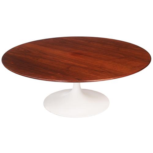 Eero Saarinen Pedestal coffee table, by Knoll, round walnut top with beveled edge over metal base with fused plastic finish, original finish, 42"dia. x 15"h, wear to finish of top, very good condition