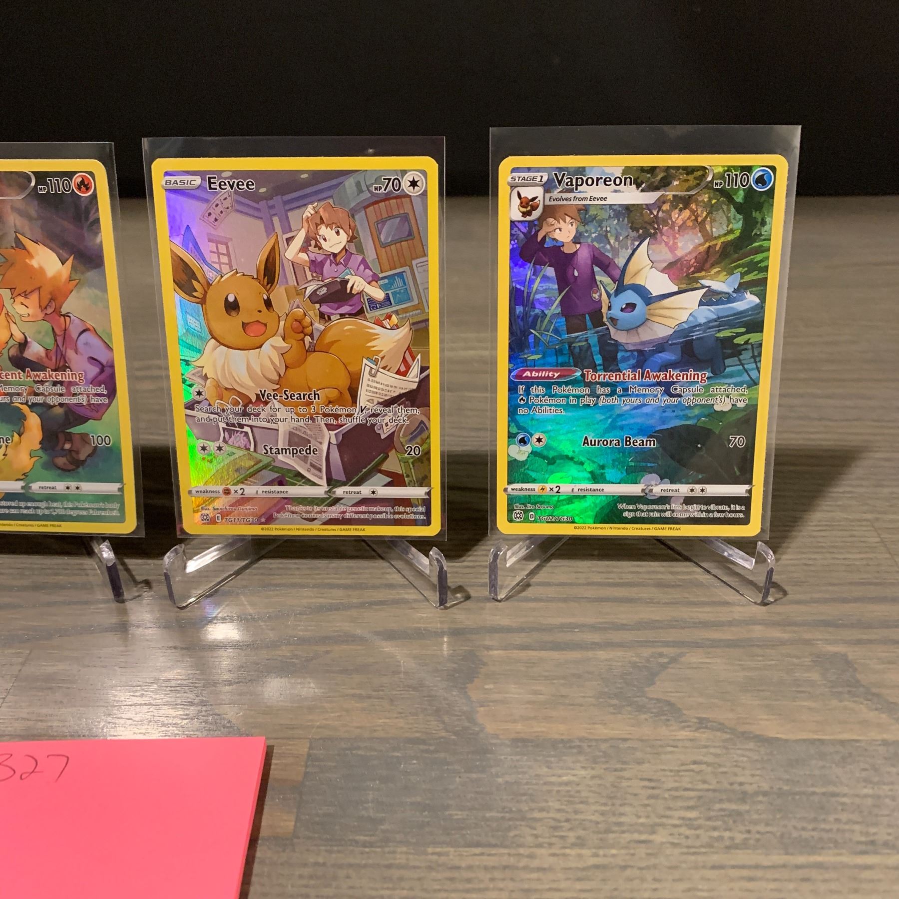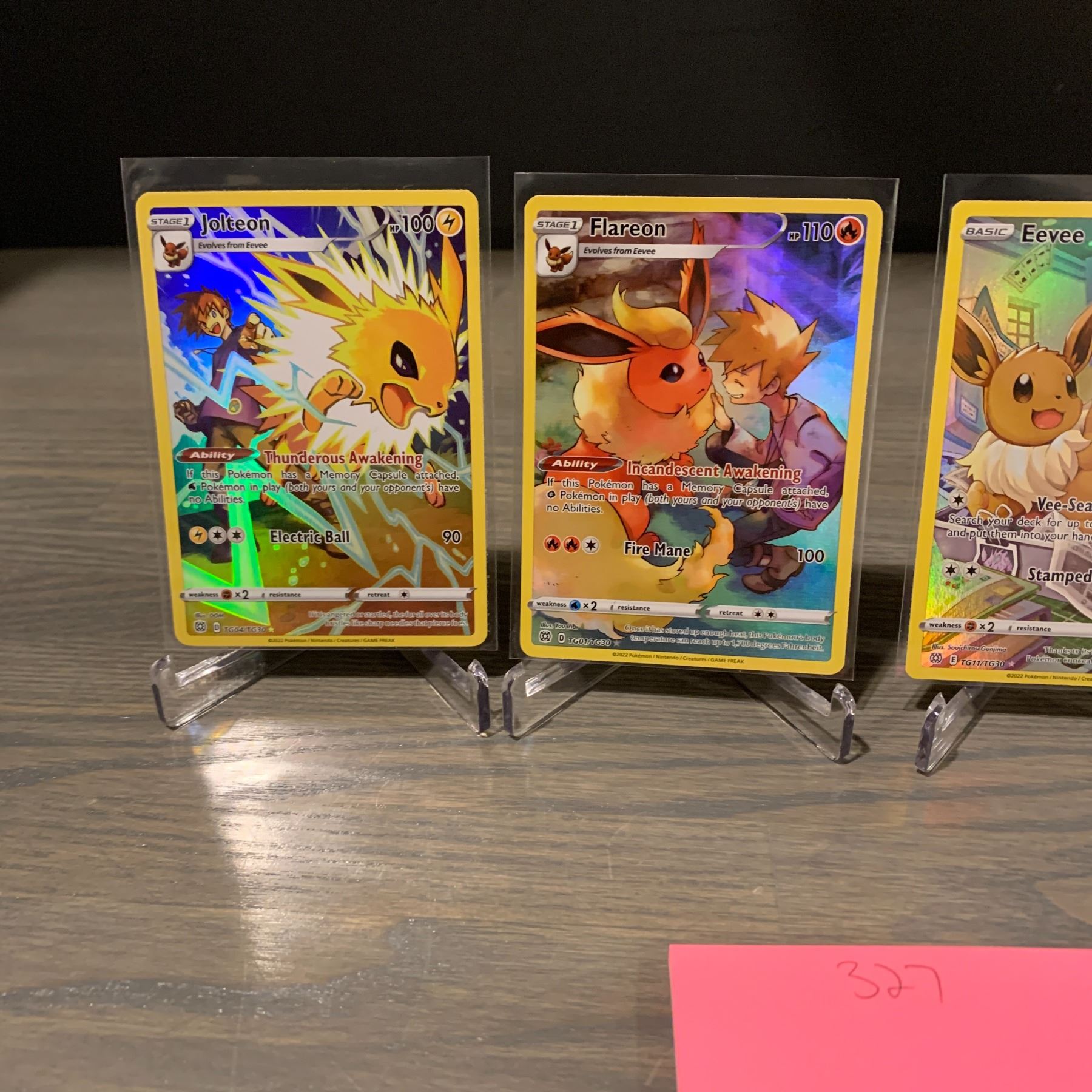 Eevee Evolutions Trainer Gallery Pokemon Cards. We are a veteran owned company. Please look at the pictures carefully to determine what you believe the condition of collecitible is. We are currently accepting consignments. Email us a aeronhouse1994@gmail.com or visit our website, www.ahauctionhouse.com. We are currently seeking Star Wars related consignments.