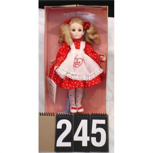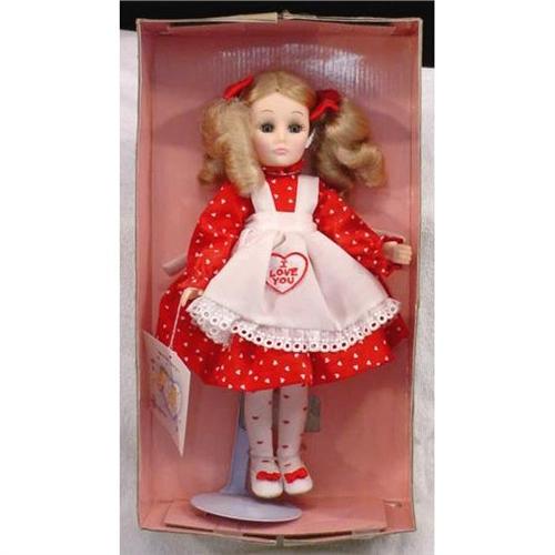 Effanbee Doll style number FB1145, "With Love" 1989. Vinyl Body and 11 inches tall. Original box and packaging. Opening and closing eyes and doll and clothing are in mint condition. Box measures 13" x "8" x 4" and weighs 15 ounces. [81]