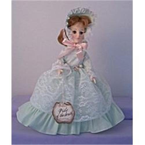This lovely little lady represents "New Orleans" in Effanbees' Pride of the South Collection. She is wearing a beautiful mint green, ruffled dress with lovely white lace overlay. She has lace edged pantaloons and a crinoline. Her bonnet matches her dress and tops her gorgeous auburn hair and blue grey eyes. MIB.