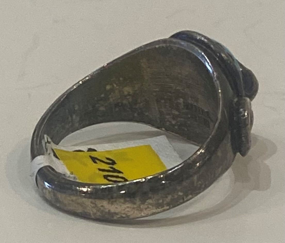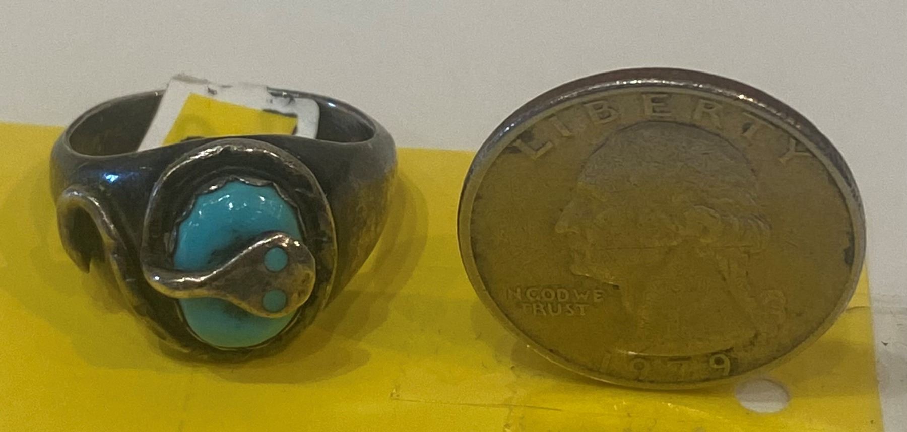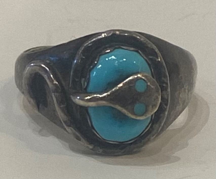 Effie Calavaza, Zuni Silversmith's Turquoise Ring, hallmark. Vintage piece with nice patina Size 10