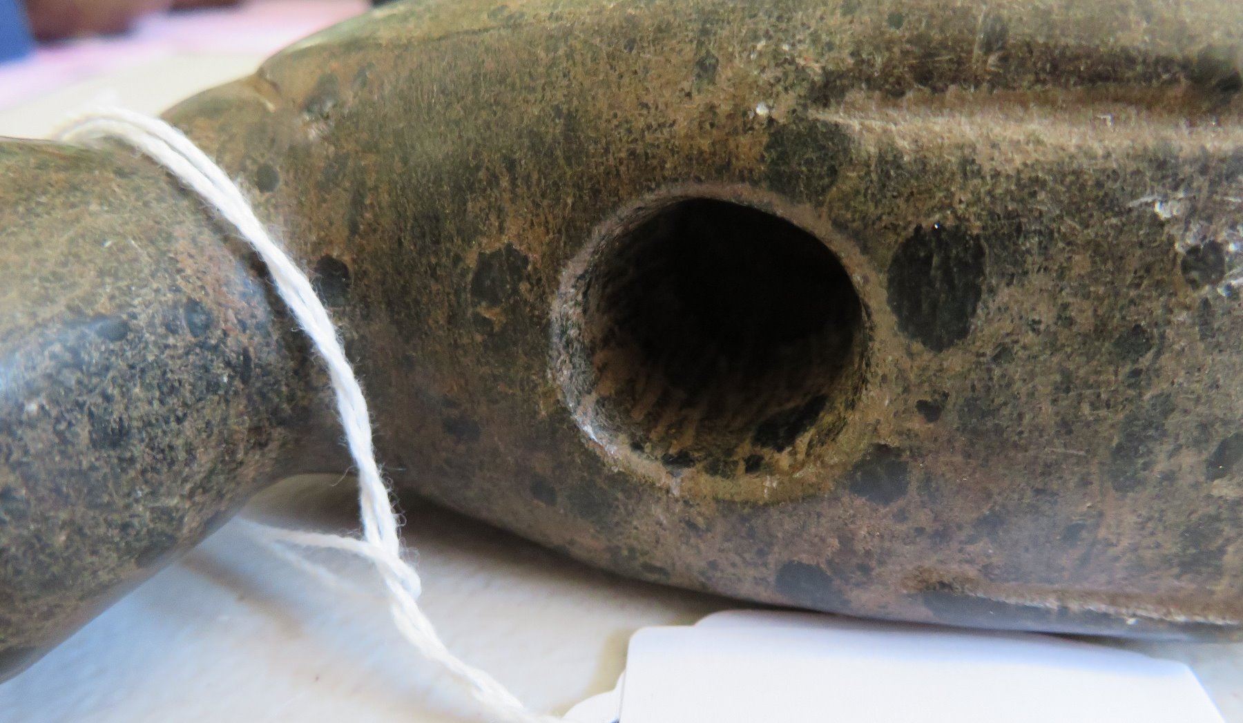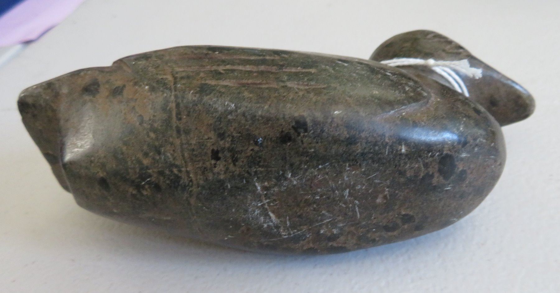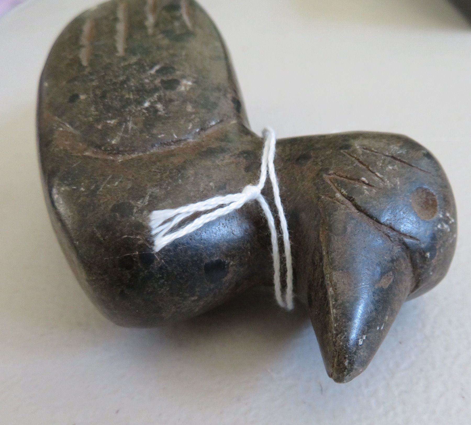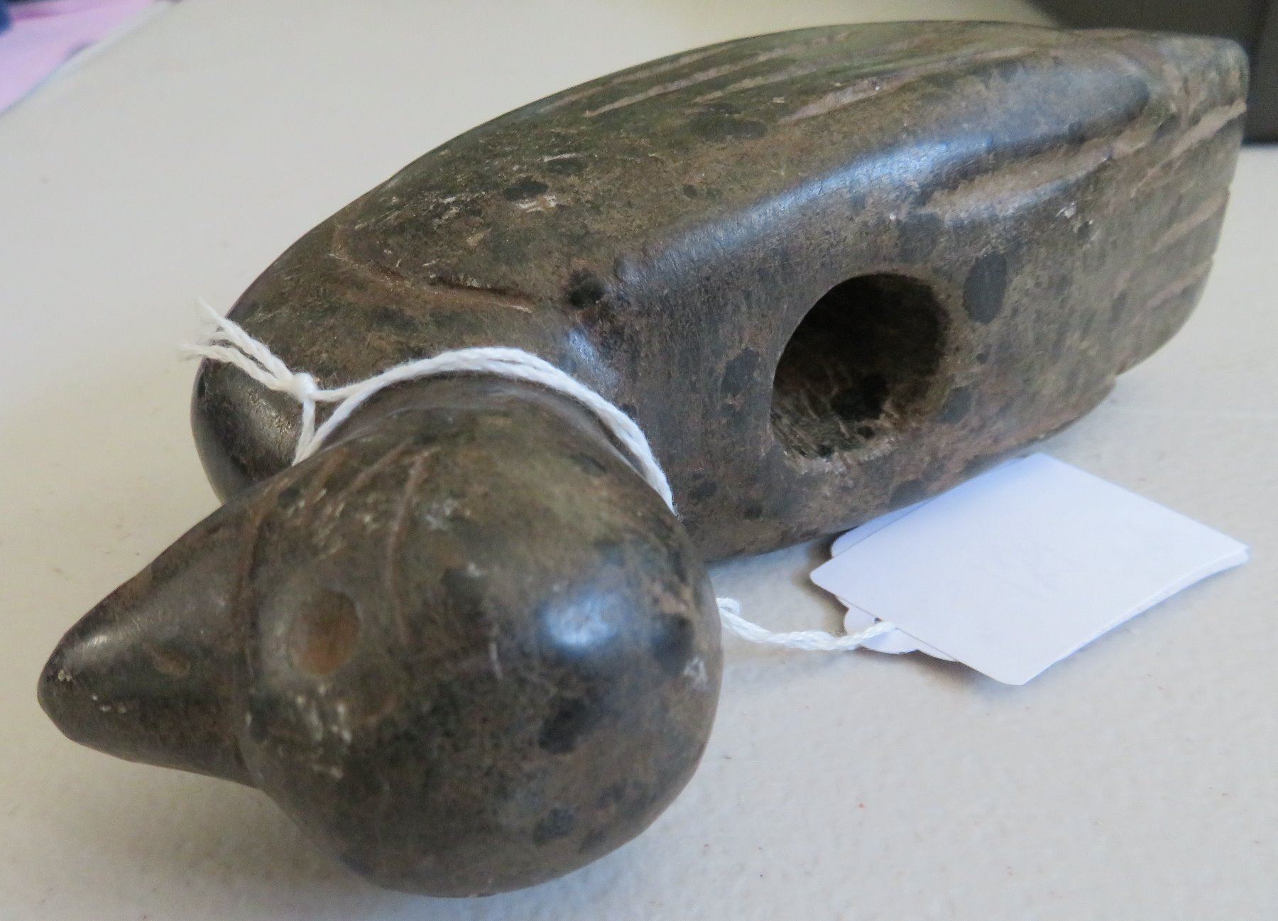 Effigy Pipe, pre-historic item. Made of steatite, the item measures 6" x 3" x 2". Ohio. Condition: Good, see images. Shipping: $22.50 w/insurance and signature.