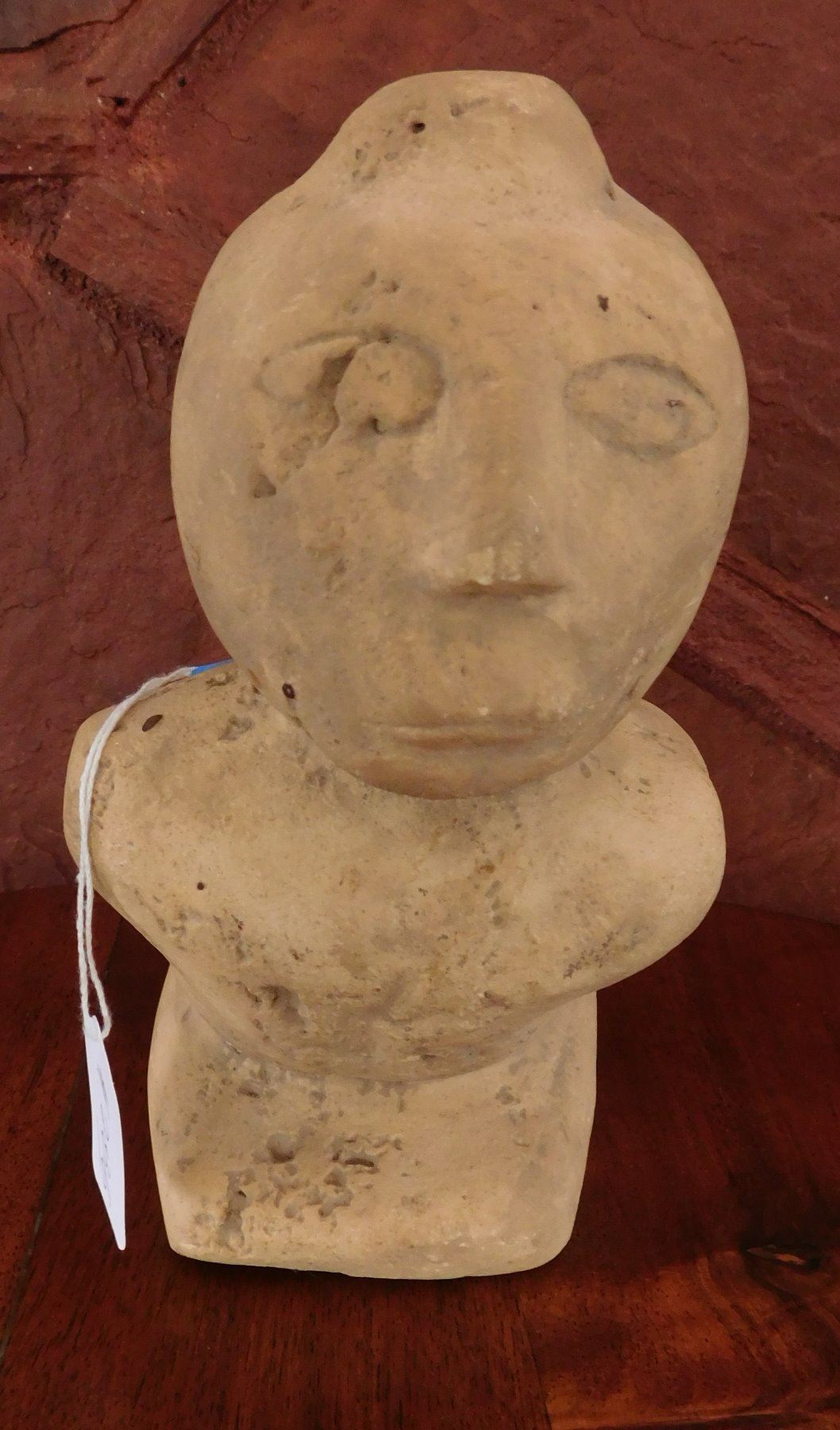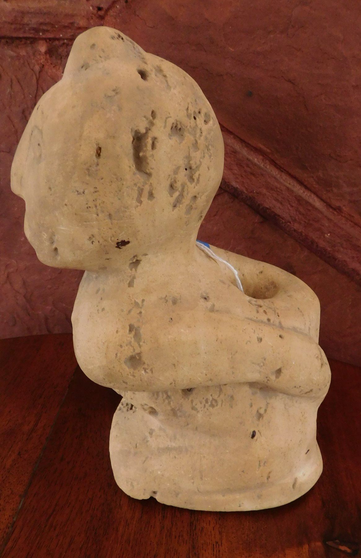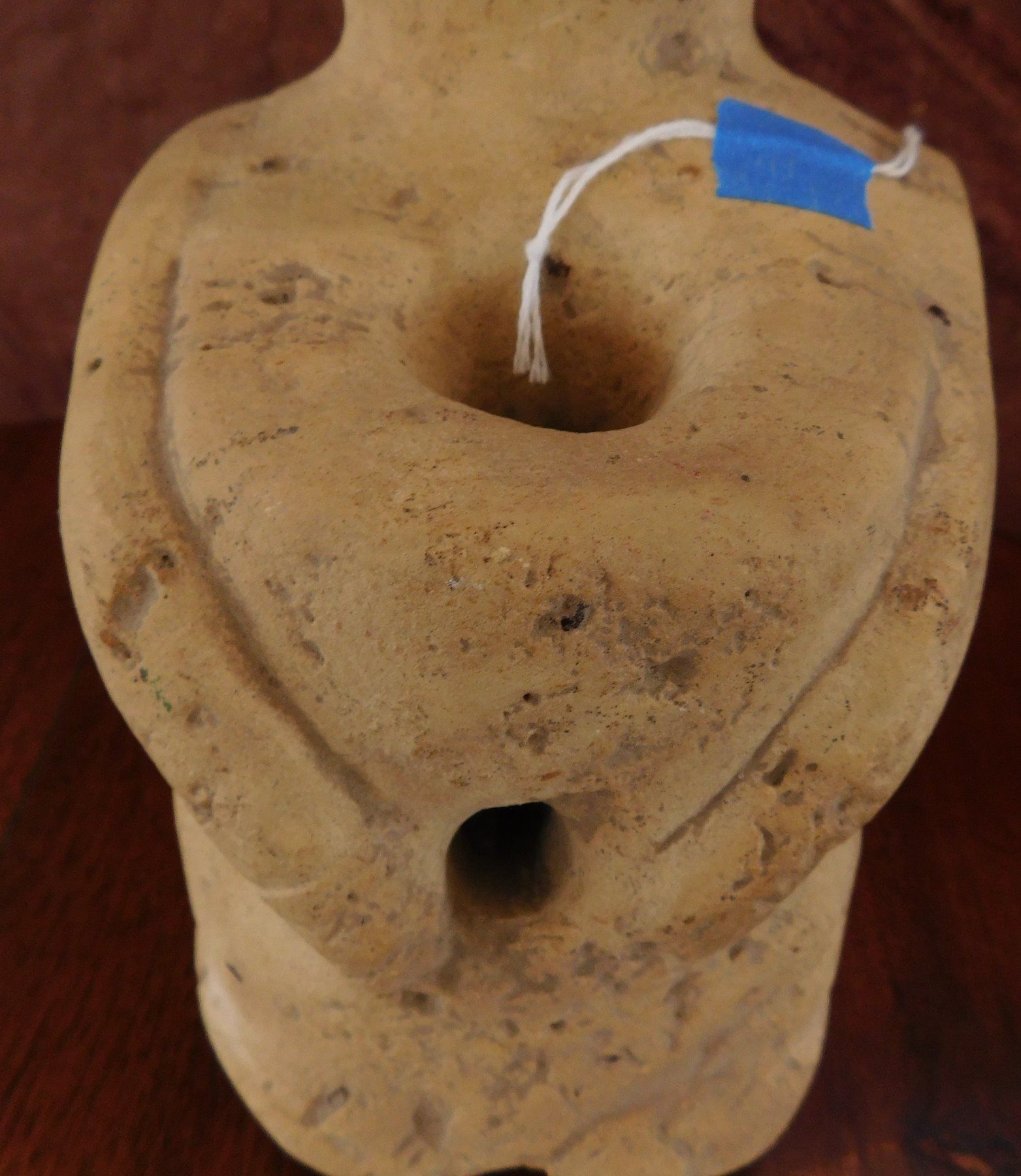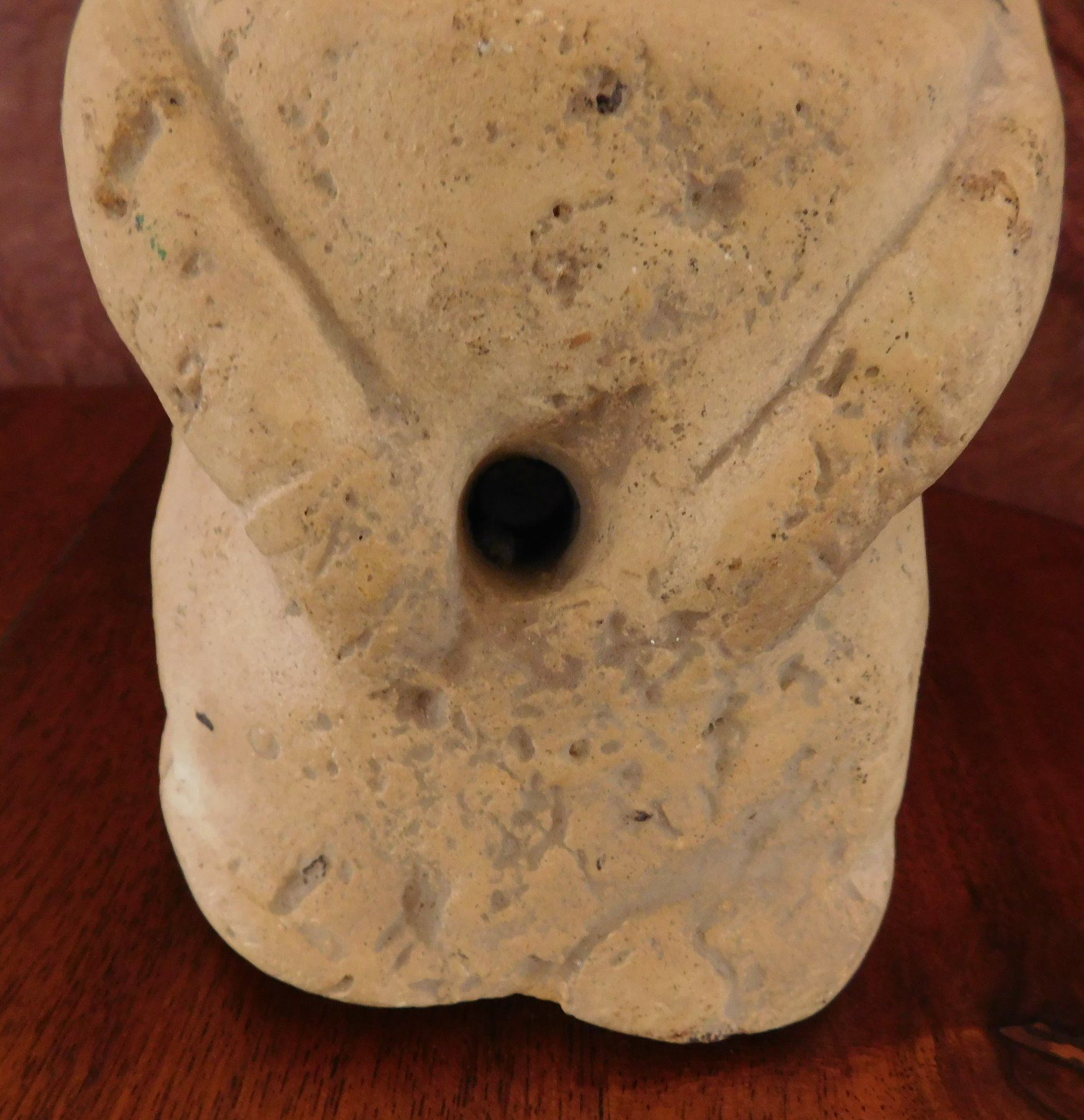 Effigy Prisoner Pipe, pre-historic item. Made of sandstone, the item measures 5" x 5 1/2" x 9 1/2". Georgia, Mississippian culture. From an old, 1960s California collection. Condition: Good, some wear and scratches, see images. Shipping: $40.00 w/insurance and signature, due to size and value.