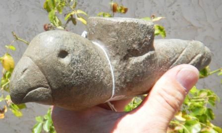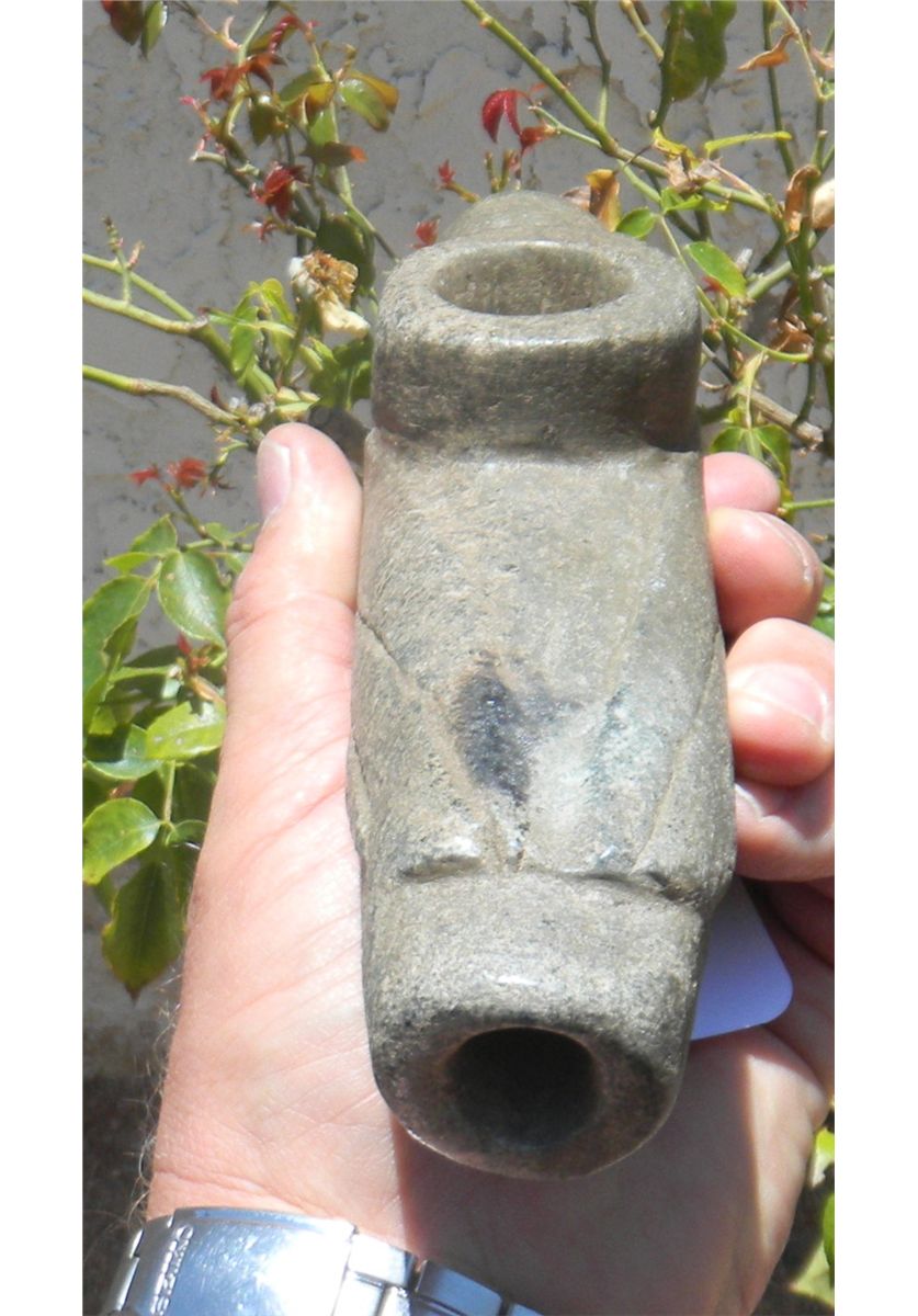 Large effigy stone pipe from Tennessee. The pipe measures nine by two by two inches. Pre-historic . Very Good