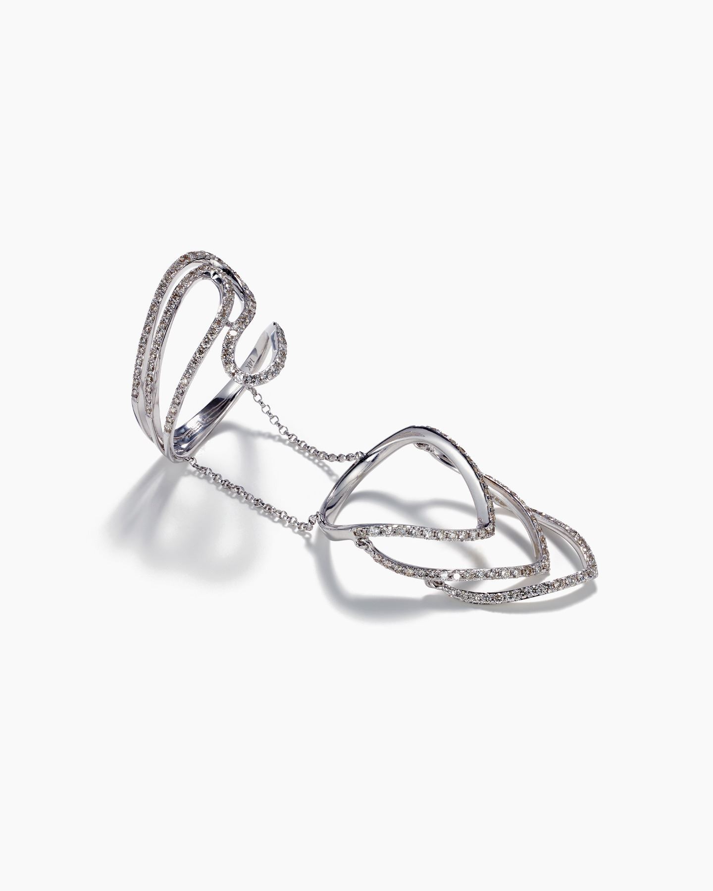 This daring ring design challenges the norm. Designed to cover the entire length of your finger with a delicate sparkle, this is a ring that will have your friends talking. This piece delivers effortless glam that will spice up any ordinary day.