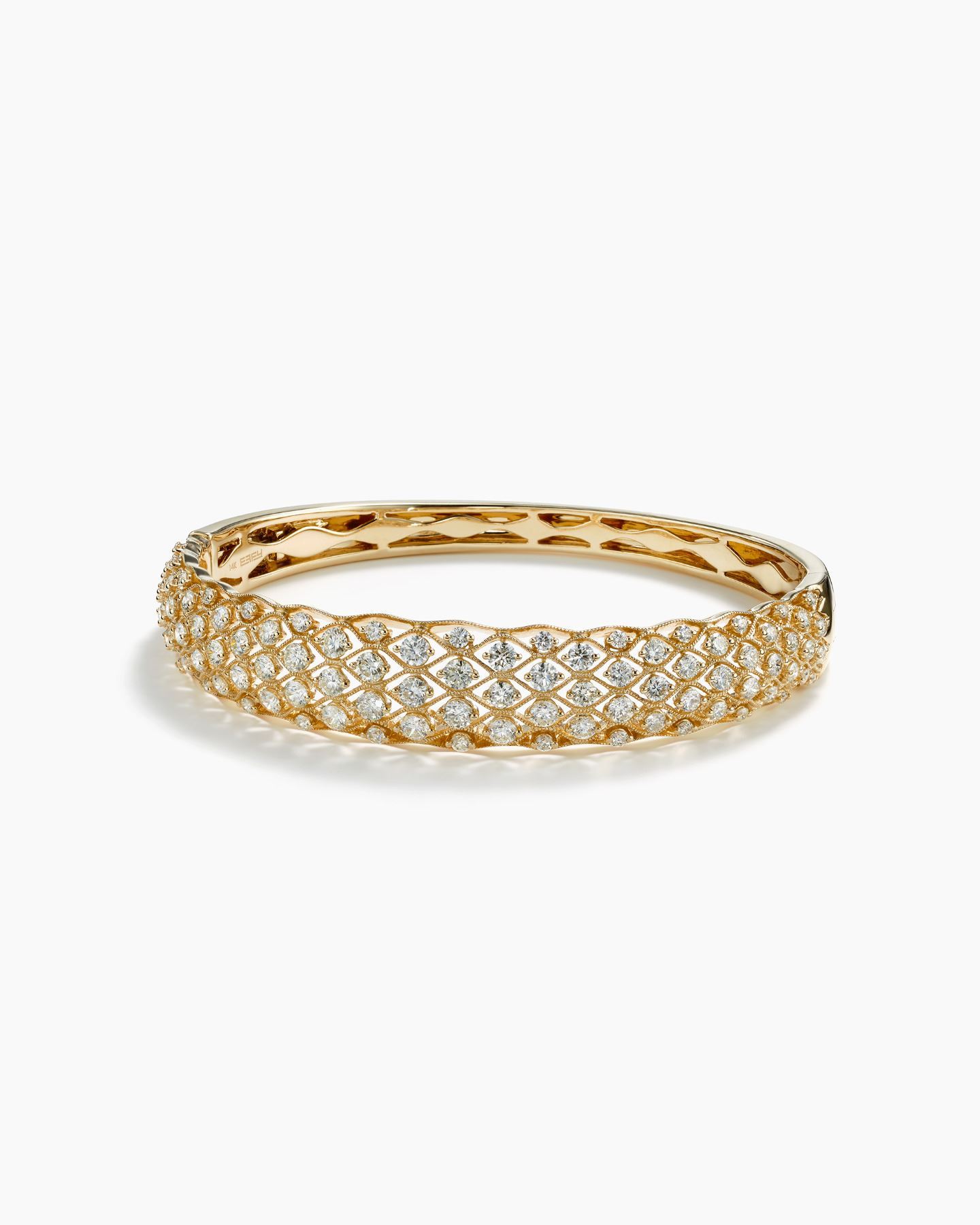 14K YELLOW GOLD BANGLE WITH 3.45TCW WHITE DIAMONDS H/I COLOR SI1/SI2 CLARITY