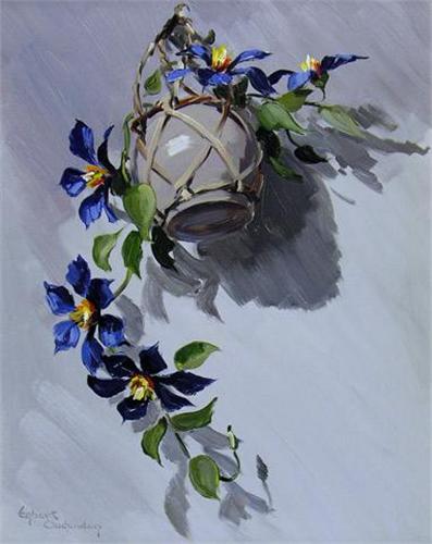 [Dutch/Canadian, b. 1914] CLEMATIS Oil on board 20 x 16 ins. -Signed -together with- YELLOW TULIPS Oil on board 24 x 18 ins. -Signed LOT OF TWO