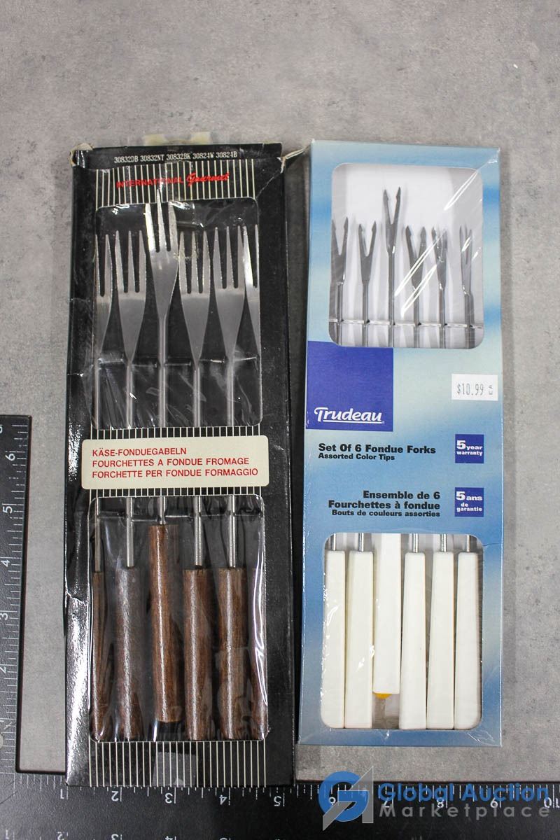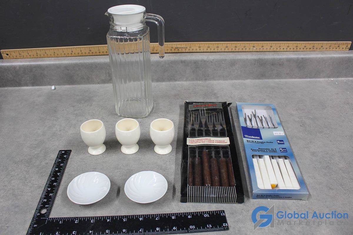 Egg Cups, Pitcher w/Lid, Fondue & Cheese Fork Sets