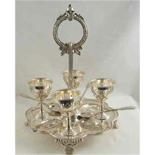 <tr><td>Title:Egg Stand/Server for 4 English Silver Plate</td></tr>