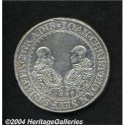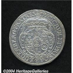 <B>Eggenberg (Austrian State). Johan Christof Taler 1658, </B></I>Dav-3395, KM39. Nice VF-XF, very lightly cleaned and with a vague trace of mounting on the top rim. Very scarce. <BR><BR><B>Important notice:</B> Heritage usually auctions material at the rate of 200-250 lots per hour. On some occasions eBay Live bid software or the Internet may not be able to keep up with the pace of the auction. We recommend placing a realistic absentee bid now as insurance to avoid disappointment. Occasionally the auctioneer may eliminate or reject an eBay Live bid, and the auctioneer may also reopen a lot after the close of the eBay live bidding (usually because we missed an audience bid), and may reject your bid even if it shows you as the winning bidder. By bidding via eBay Live, you agree that Heritage may award the lot to another bidder at its sole discretion under the circumstances described above or any other reasonable circumstances. Since eBay bids are not shown to us until we open the lot on the floor, we treat those bids just like floor bids. In most cases the floor responds before the eBay bid is presented to us, due to Internet lag time, so for consistency we have made it a policy that floor bids are always considered first over tie eBay live bids. Also please note that all Heritage lots purchased through eBay Live carry a 20% Buyer's Premium. Please make sure you read the Terms and Conditions before you bid.