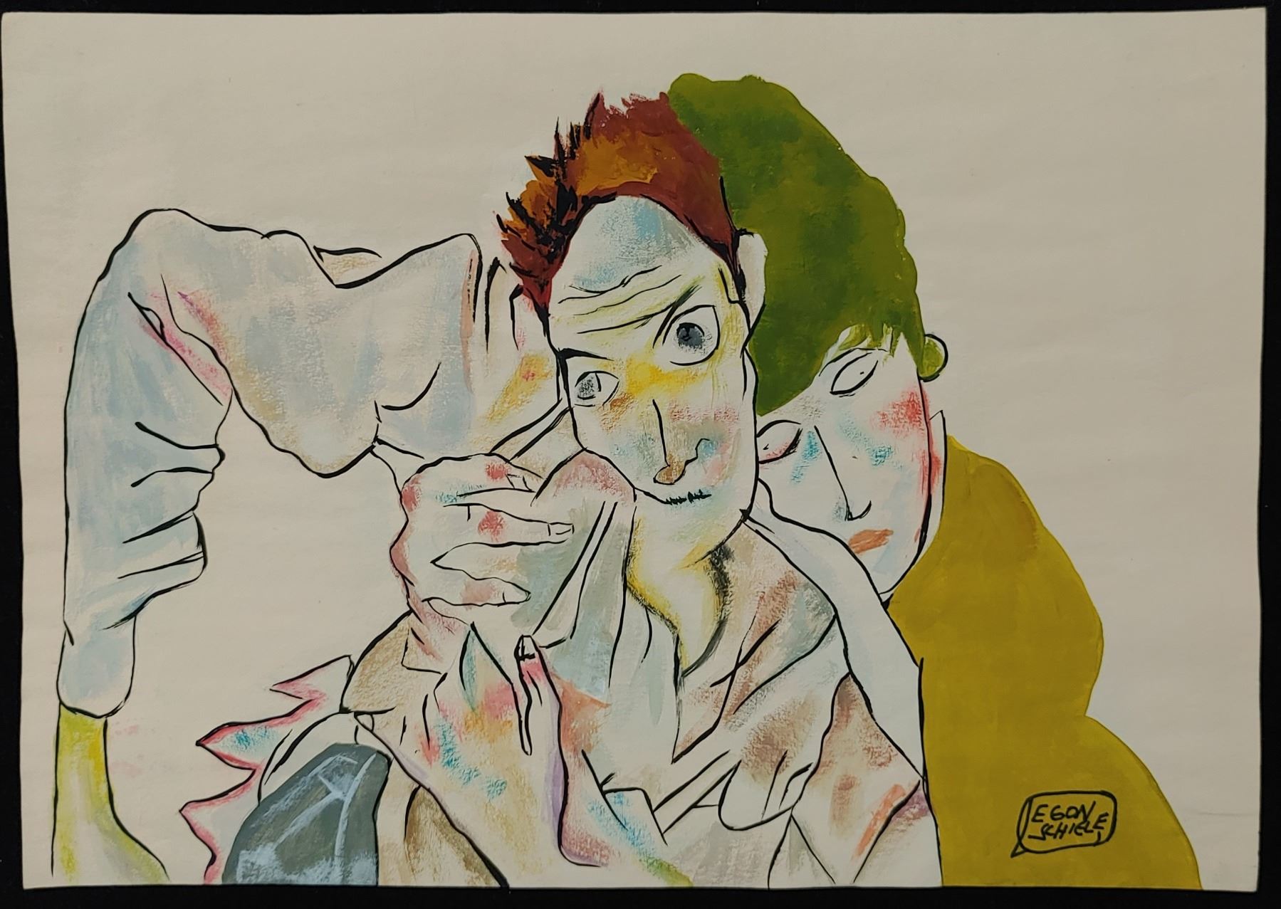 "Gouache drawing on paper by the artist Egon Schiele. On the reverse side you can see two ink stamps at different points on the sheet. The paper remains intact and clean like the painting.