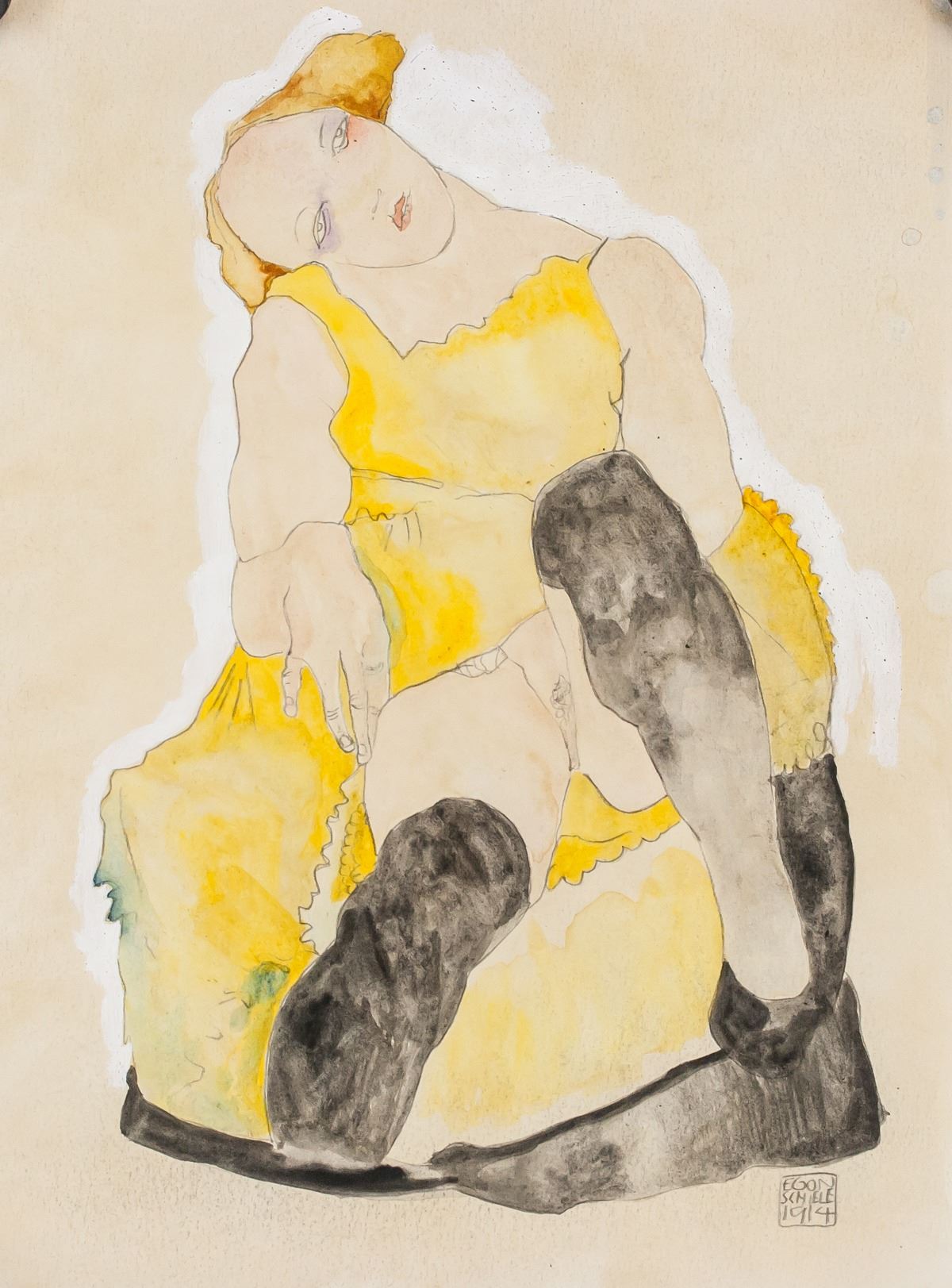 Watercolor on board. Featuring a portrait of a woman. Signed EGON SCHIELE and inscribed 1914 on the lower right corner. Attributed to Egon Schiele (1890-1918, Austrian). 35 x 27 cm (14 x 10.5 inches). Provenance: This lot carries limited provenance from a Toronto estate