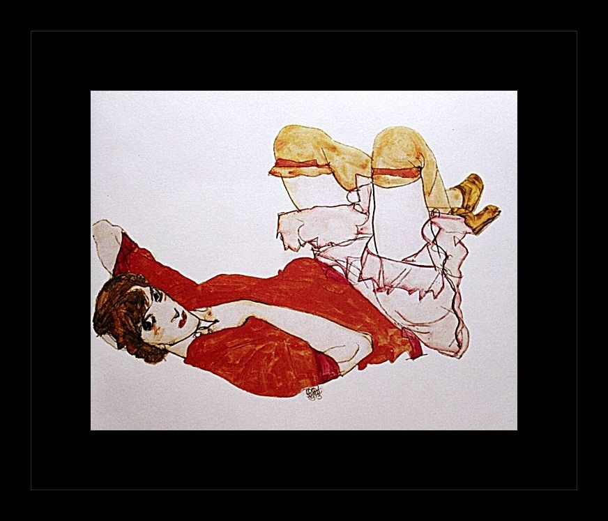 Erotic sketch lithograph by Egon Schiele. Comes gallery framed black on black.