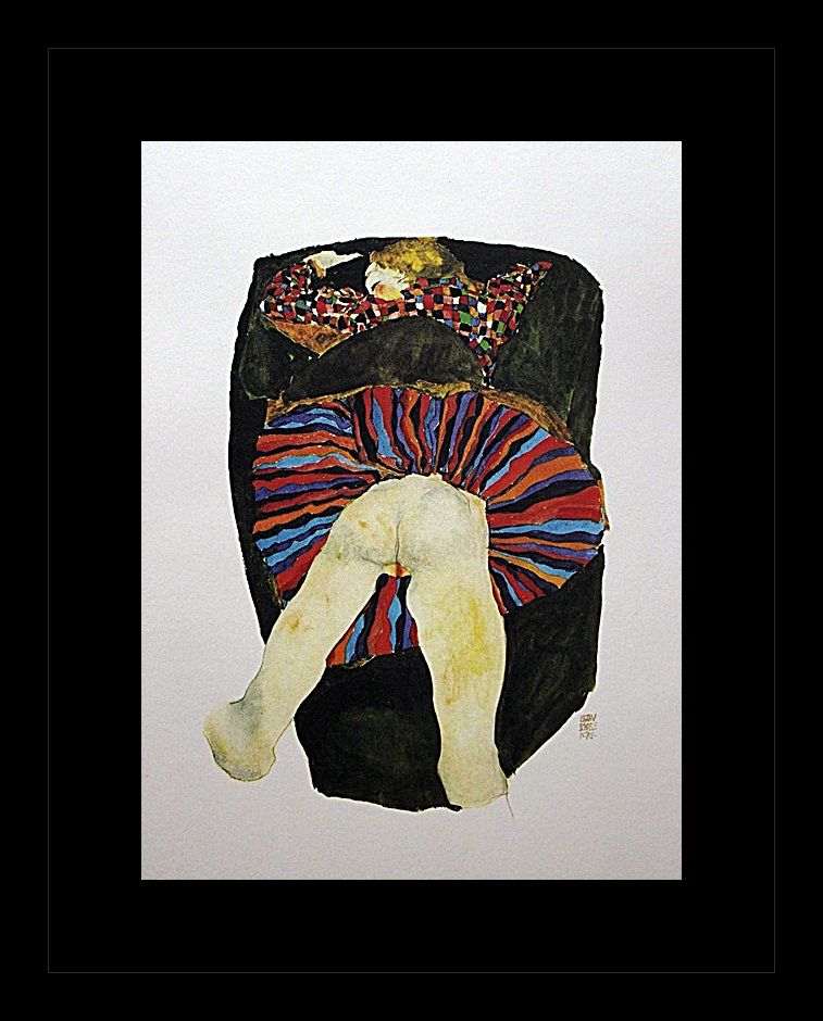 Erotic sketch lithograph by Egon Schiele. Comes gallery framed black on black.