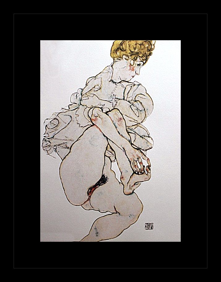Erotic sketch lithograph by Egon Schiele. Comes gallery framed black on black.