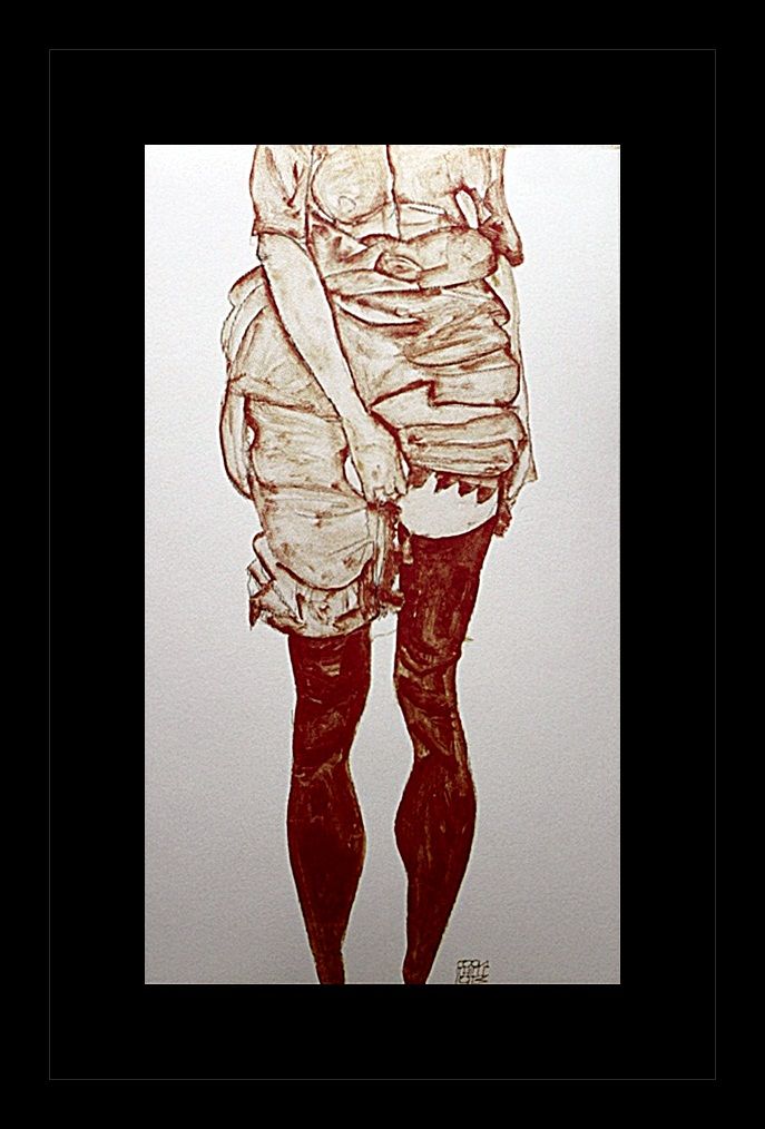 Erotic sketch lithograph by Egon Schiele.    Comes gallery framed black on black.