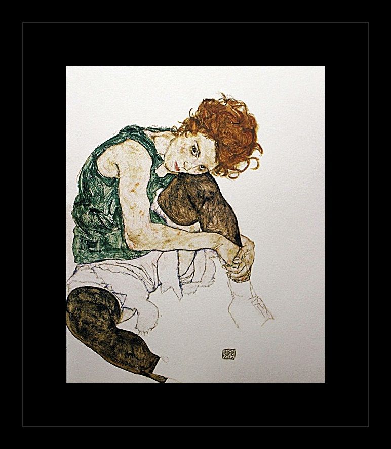 Erotic sketch lithograph by Egon Schiele. Comes gallery framed black on black.