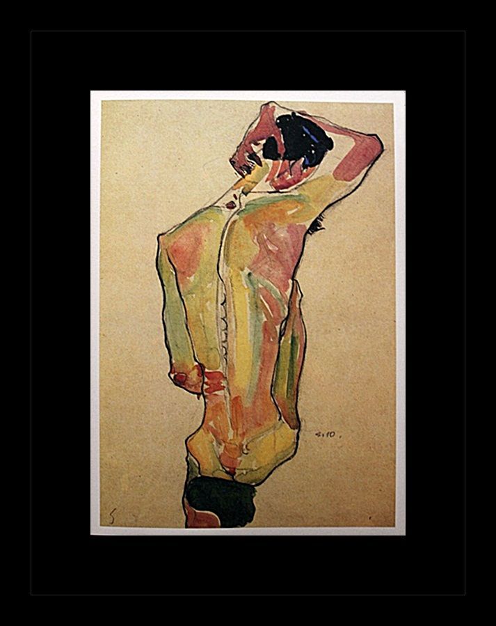 Erotic sketch lithograph by Egon Schiele. Comes gallery framed black on black.
