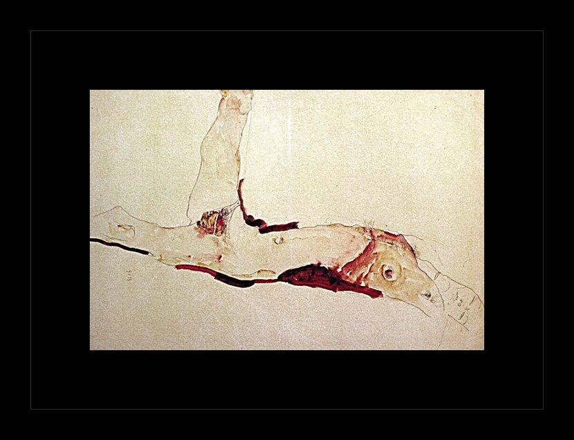 Erotic sketch lithograph by Egon Schiele. Comes gallery framed black on black.