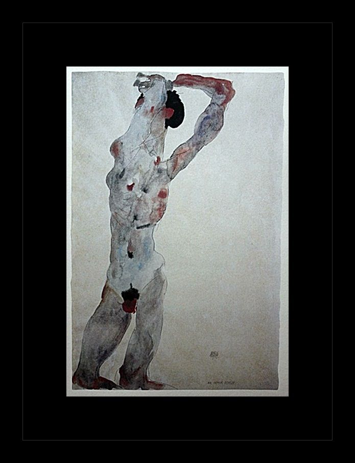 Erotic sketch lithograph by Egon Schiele. Comes gallery framed black on black.