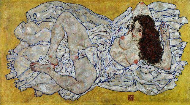 Artist: Egon Schiele - Title: Resting Nude - Medium: Fine Art Reproduction Giclee on Canvas - Image Size: Approximately 11 inches x 20 inches - Unframed on Unstretched Canvas - Biography: Egon Leo Adolf Ludwig Egon Schiele was an Austrian Expressionist painter. A protégé of Gustav Klimt, Egon Schiele was a major figurative painter of the early 20th century. His work is noted for its intensity and its raw sexuality, and the many self-portraits the artist produced, including nude self-portraits.