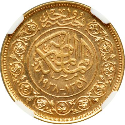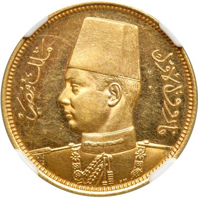 Egypt. 100 Piastres, 1938. Fr-36; KM-372. Farouk, 1937-1952. Military bust left. Reverse Legend. Royal Wedding. In a new NGC 4 prong holder. NGC graded MS-61.
